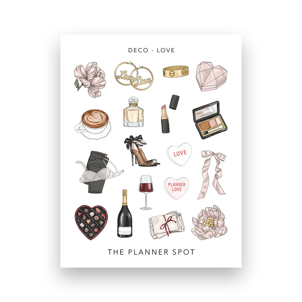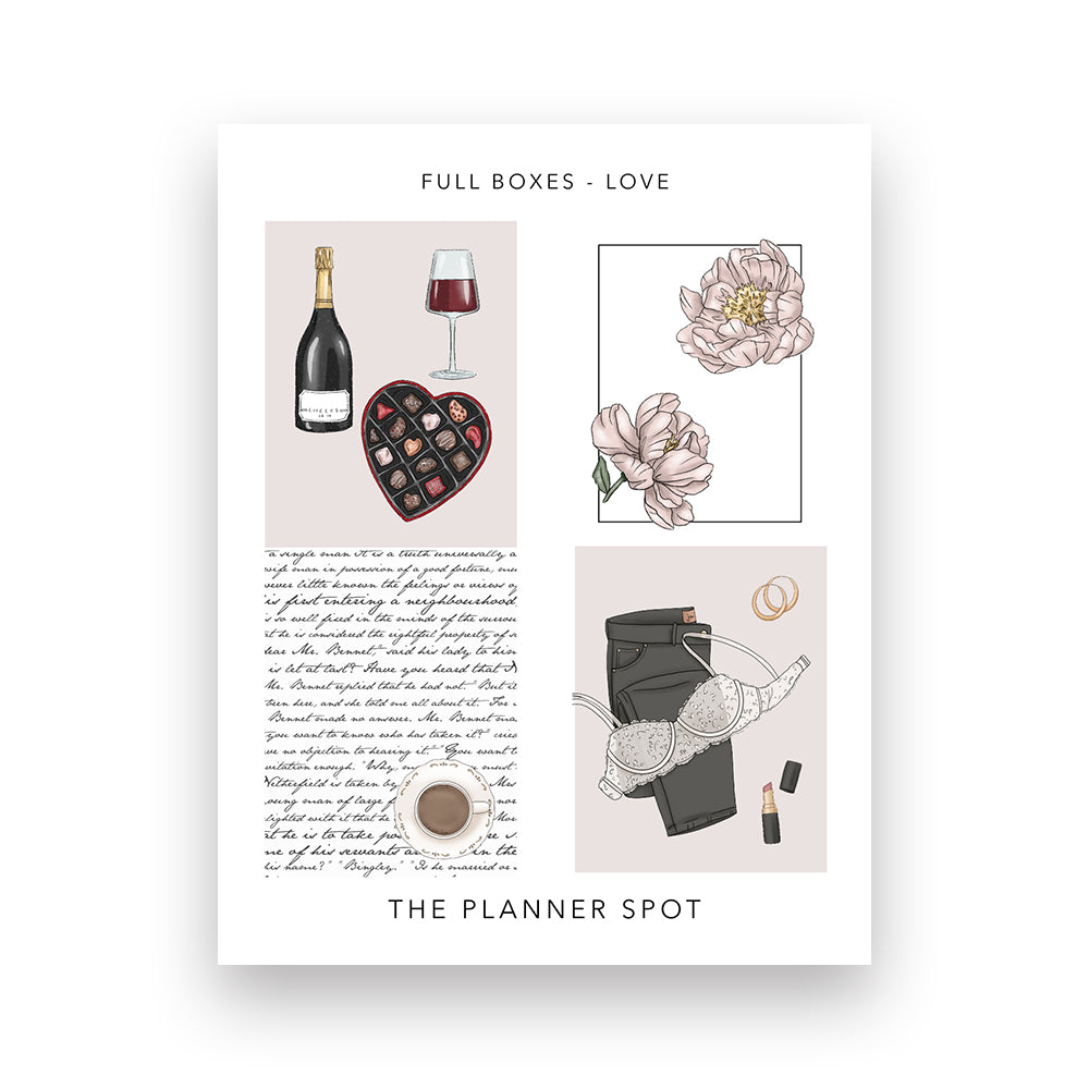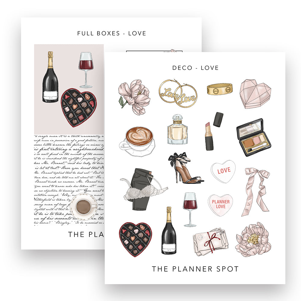 Decorative cutout and full box stickers themed for Valentine's Day, love, romanticizing your life.