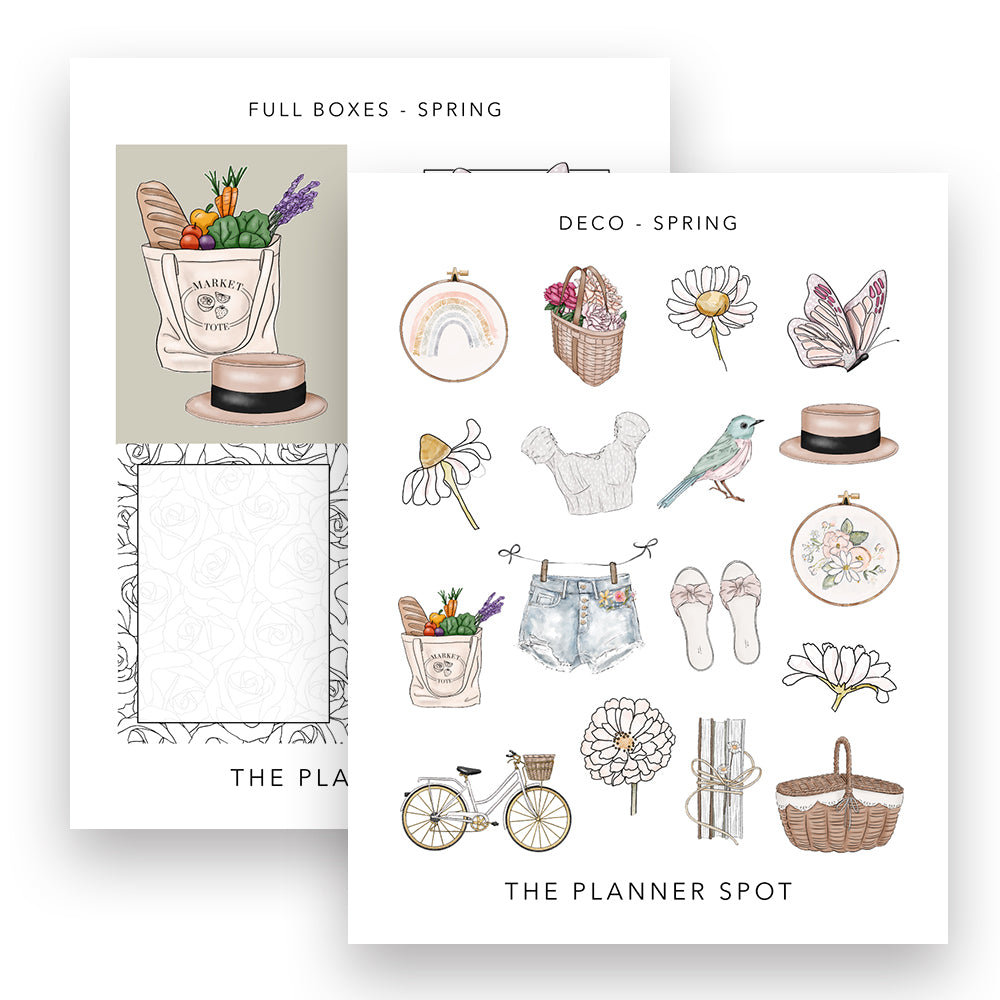 Decorative cutout and full box stickers themed for Spring.